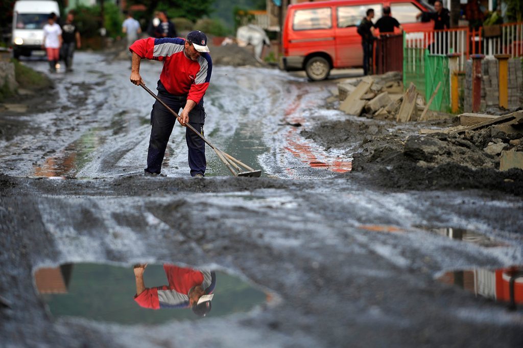 Čišćenje terena nakon poplava. Topčić Polje, maj 2014. (foto: Midhat Poturović)
