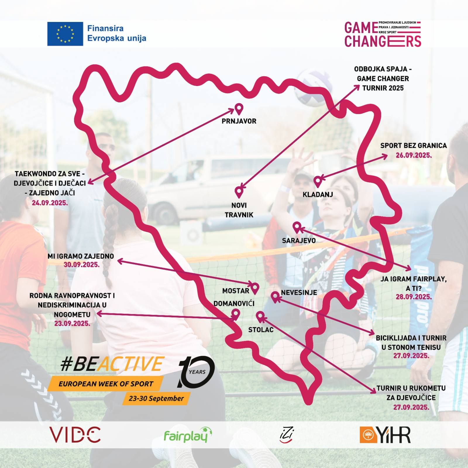 U okviru Evropske sedmice sporta 2025, projekat Game Changers podržava 8 sportskih događaja širom Bosne i Hercegovine.