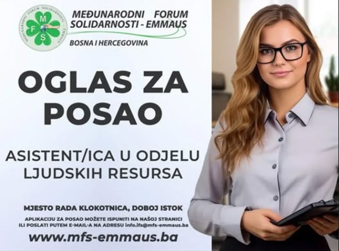 Zbog ukazane sve veće potrebe, Udruženje HO MFS-EMMAUS Doboj Istok raspisuje oglas za prijem Asistenta/ice M/Ž u Odjelu ljudskih resursa.
