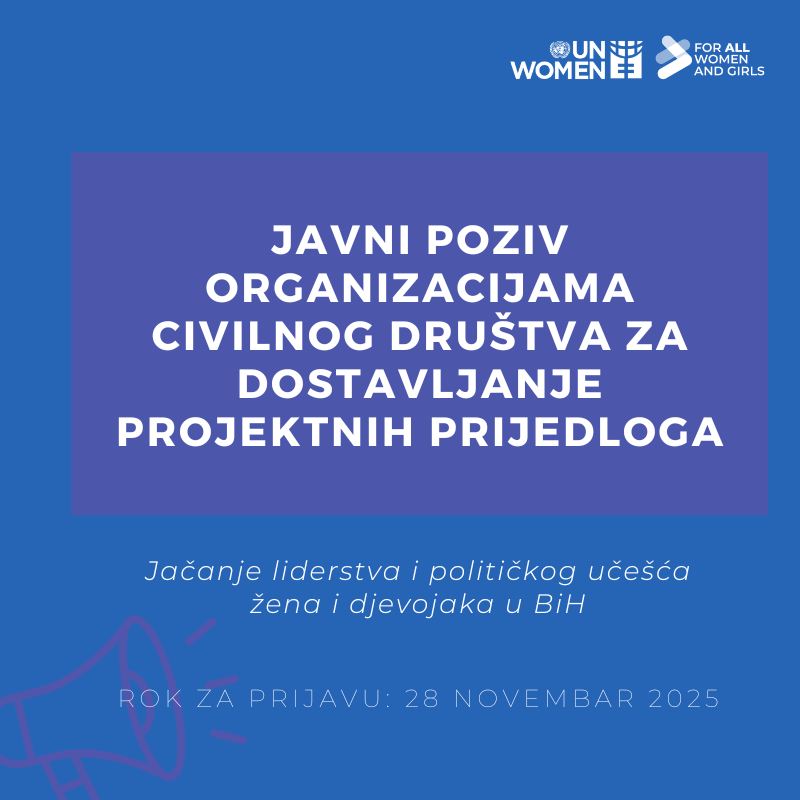 UN Women BiH, u okviru Akceleratora rodne ravnopravnosti (#GEA), poziva organizacije civilnog društva da dostave prijedloge projekata usmjerenih na osnaživanje žena i djevojaka kroz prilagođene programe edukacije, razvoja liderskih vještina i mentorskog rada.
